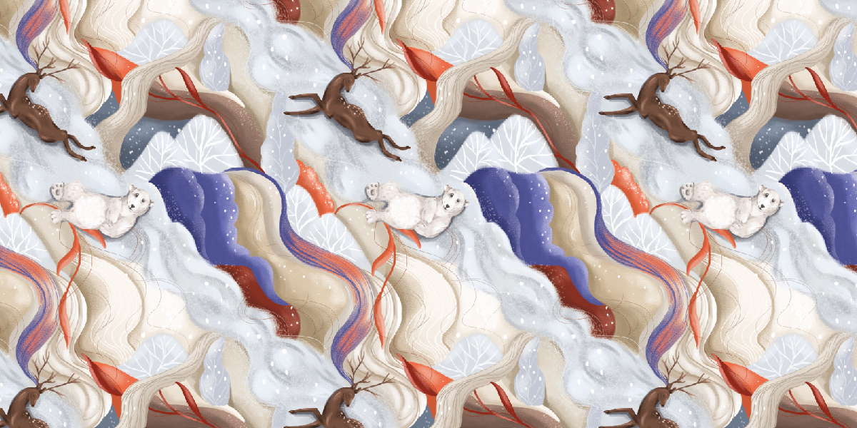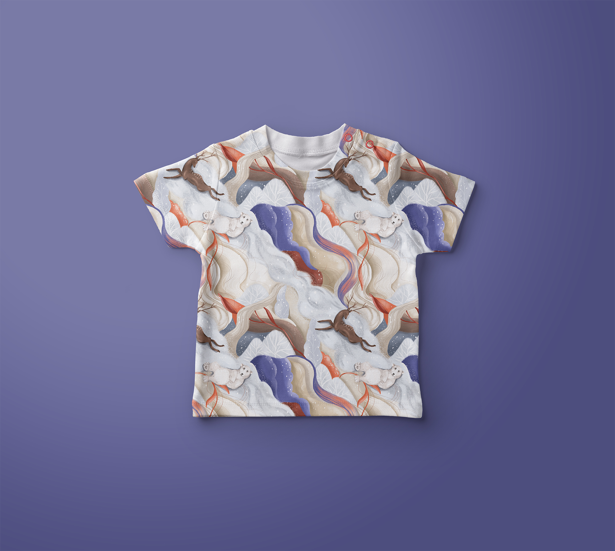A fairy-tale pattern with animal motifs created for the Polish brand Figa.